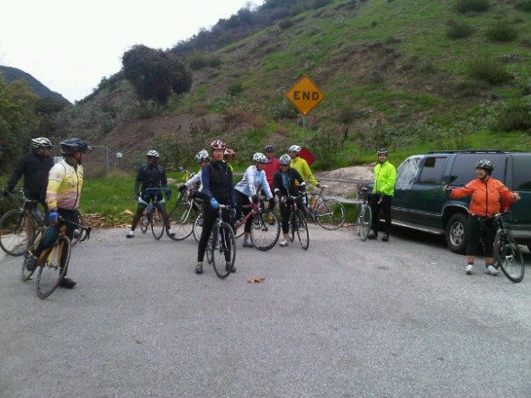 We headed out bright and early to Santa Monica the day after New Year’s. It was another freaking cold morning. We had originally considered doing a ride on New Year’s Day for half a nano second, but we knew there was no way we could get up that early after New Year’s Eve. Hee hee! We joined up with Shifting Gears, another awesome training ride group that I used to do a lot of training rides with. They tend to do most of their rides on the Westside and a lot of them start from Helen’s Cycles. The folks at Helen’s are super supportive. They even had someone open up the store just for us so we could use their restroom and storefront to get ready.