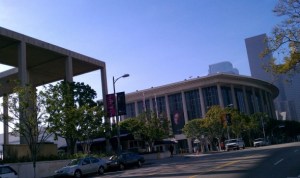 I was a little surprised that there were only about 20 riders. Since it was such a unique ride, I had thought that a lot more riders would show up. Perhaps the Super Bowl stole the crowd. Nonetheless, we had about 20 riders eager to tour downtown. What I didn’t know was that one of the leaders, Shawnet, works for the Los Angeles Opera, and she offered to start things off with a quick “walking” tour around the Los Angeles Music Center facility. She even took us inside the Dorothy Chandler Pavilion and showed us around. Cool!