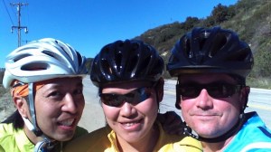 Up until this point, the weather had been cooperating, we’d been going at a pretty good pace and riding on mostly flat service. But I knew what was coming up next…La Tuna Canyon. I’ll be honest; I was dreading the climb. La Tuna Canyon is like the Sepulveda Pass. It’s a long, steady climb – about 4.5 miles. Once you get up into the mountain-y part, there are really no places to pull over, so pedal pedal you must. To my surprise, the climb wasn’t too bad and before we knew it, we were at the top. Sam did really well, he shot past us and was the first to the top. Go Sam!!