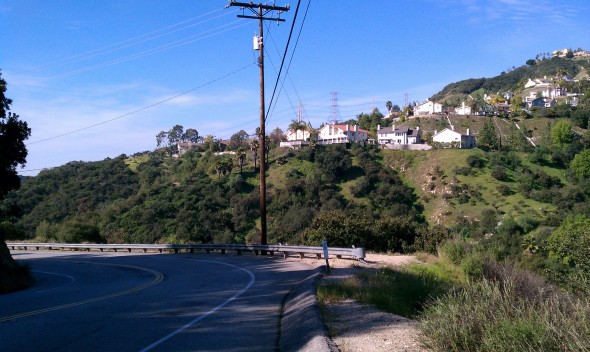 We started at the Los Angeles Zoo, which is actually a great place to start a ride since parking is free. And, as it had been on every other ride, it was an extremely cold morning. I can’t wait till the weather warms up and it doesn’t feel like an ice box outside. So off we went, we headed south to exit out of Griffith Park (where the Los Angeles Zoo is) and then east toward Glendale. We quickly came to the base of Chevy Chase at about four and a half miles into the ride. The start of Chevy Chase was in the busier part of Glendale, so it was relatively flat for the first three miles. I was feeling great, even once we started getting into the quieter and more mountain-y part where the houses are nice and expensive. Soon the road got steeper and there were fewer houses; still I thought it was a manageable climb. And then we passed the intersection of Chevy Chase and Linda Vista Road and that’s when the real climb started. The last mile and a half was on a ridiculously steep windy two-lane mountain road with a hillside to the right and a mountain cliff to the left. It was then that I remembered Chevy Chase. I must have blocked out the horrible memories but as I was climbing the last mile to the top, I then recalled this crazy road. All I could think about was Sam and how he was gonna kill me when we get to the top. Argh!