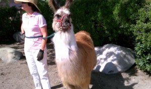 I thought the ride only went as far east as Arcadia, but I was wrong. We kept going east and rode passed Monrovia and into Duarte. Near the second pit stop, we saw something that completely caught us off guard…a llama!! There was a woman walking her pet lama, named Copper (but I kept calling him Cooper.) I’ve never seen a llama up close and always thought they weren’t the prettiest of animals. But this lama was tall and looked quite majestic. It was beautiful. The owner was very nice and let us take a picture with Copper. Cool!!