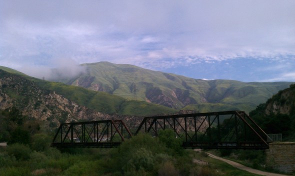 We stayed at this last pit stop for a good amount of time. It was in the quaint little town of Piru and it was also the same pit stop that we skipped at the beginning. The volunteers had set up the snack and water table under a gazebo by a little non-functioning train depot. There wasn’t much in the town, only a handful of little stores. It felt a little wild wild west. I got plenty of snacks at this break and filled up on Gatorade. We chatted with veteran training ride leader Doreen for a while, who, sadly, broke her foot the night before while setting up for this ride, so she wasn’t able to ride with us. I also caught up with Jim, the organizer of the century ride. When I did AIDS/LifeCycle in 2003, Jim was the leader of the Chain Gang, with whom I did most of my training rides. Jim trained me and I owe him a lot. He was the one who nicknamed a few of us first-time riders the “ducklings”. I miss Jim, so it was good seeing him.