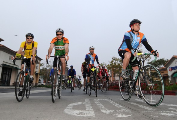 The next 10 miles riding out of Ventura was quite a pain (no pun intended). We were on Telephone Road (which made me think of Lady Gaga) and we must have hit every other red light. Bikers are legally obligated to follow the rules of the road, so we had to stop at every single red light. It was so annoying. Once we finally got off onto a less busy road there was a lot less stopping. Eventually, we made it to our fourth pit stop, which was back at Ragatz Bicycles. When we arrived, there were very few riders there. I was worried that we were at the end of the pack. I just hate to be one of the last riders. But Sam said there were still a lot of people at the lunch stop when we left and no one passed us on the way, so we couldn’t be too far behind. More riders showed up while we were there resting and refilling our water bottles, which made me feel better.