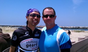 The trail ends at River’s End Café in Seal Beach where we had brunch. It was a yummy brunch. I guess I was really hungry. We hung out for an hour or so and then we got on our bikes for the return trip. During the last 10 miles down, we faced a little bit of headwind, so I was hoping that we would catch some tailwind on the way up. Sure enough, we got lucky and picked up some incredible speed on the way back – at times, we were riding at 20 miles per hour. We haven’t had much tailwind this training season, so it was quite a pleasant surprise. Just like on the ride down to Seal Beach, we did not stop riding on the return trip. But this time we got back in a little over 2 hours and 15 minutes. That was the fastest I have ever ridden and it felt so good! And I did it without any knee pain. Granted, we pretty much rode on flat ground the whole way, so the route wasn’t going to give me too much trouble. The true test will be riding on hills, which we won’t be doing anymore until the actual ride in June. Still, this ride helped boost my confidence and it was a really good – and perfect – way to end our training.